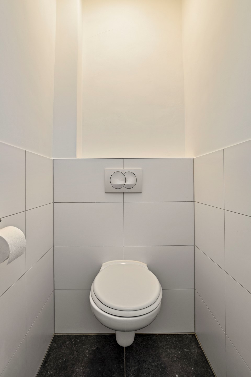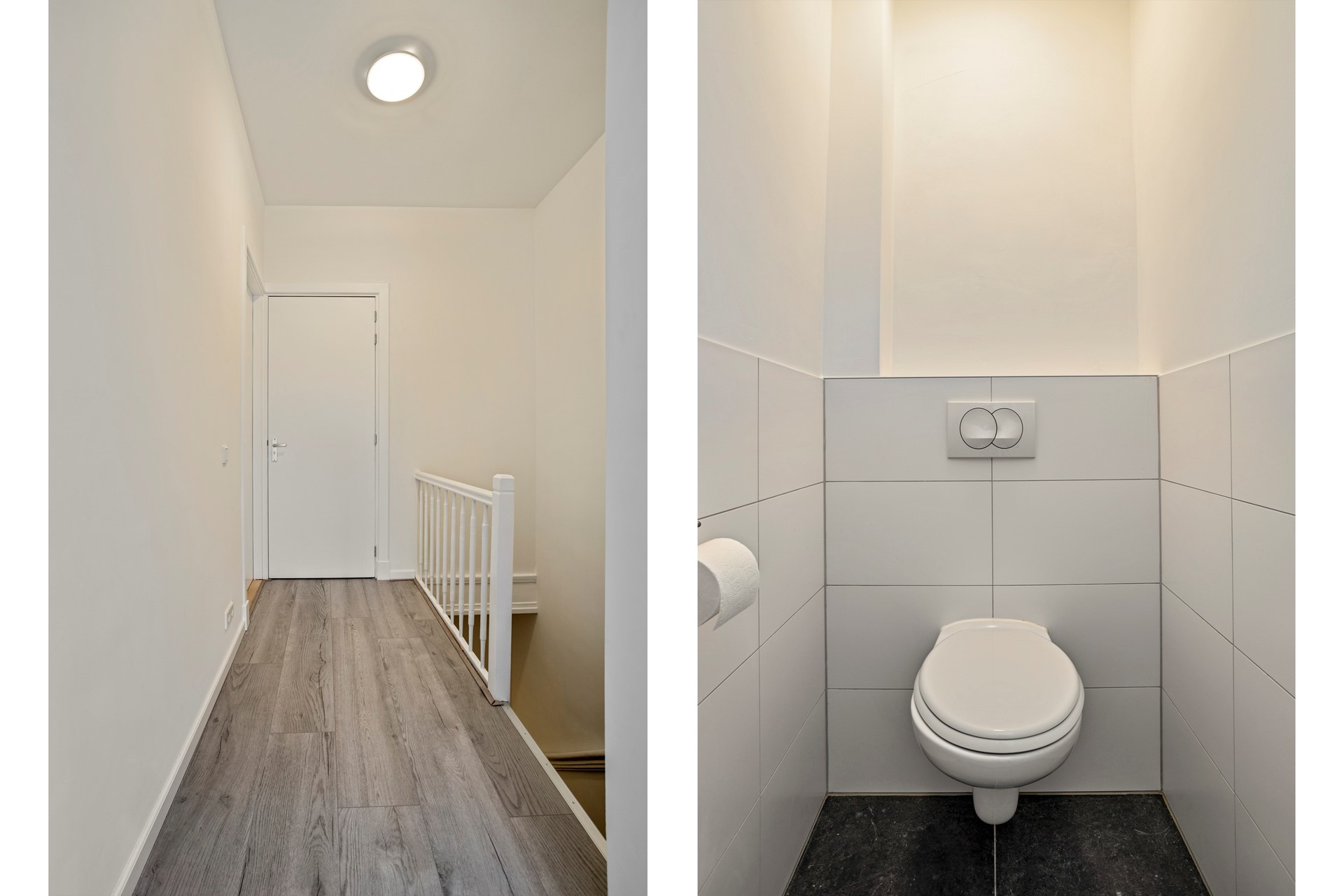 - Badkamertegels 30*60 wit op wanden en 50*50 grijze vloertegels