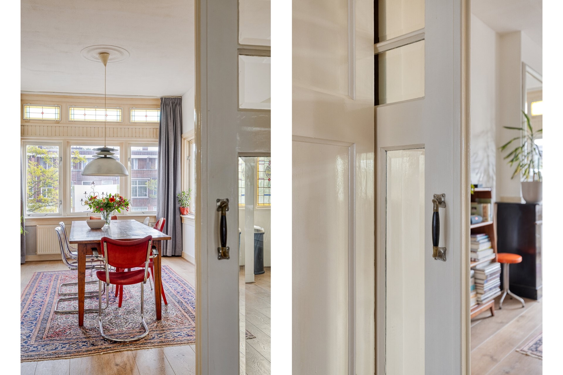 Het huis zelf ga ik missen om de sfeer die er is door de authentieke details met nog veel glas-in-lood en de oorspronkelijke schuifdeuren. De moderne en praktische halfopen keuken heeft mij ook ontzettend veel kookplezier en gezelligheid opgeleverd. Bij de eerste zonnestralen kunnen in de woonkamer de franse balkondeuren al open, zodat je in de drukke stad ook een gevoel van buiten kunt ervaren.