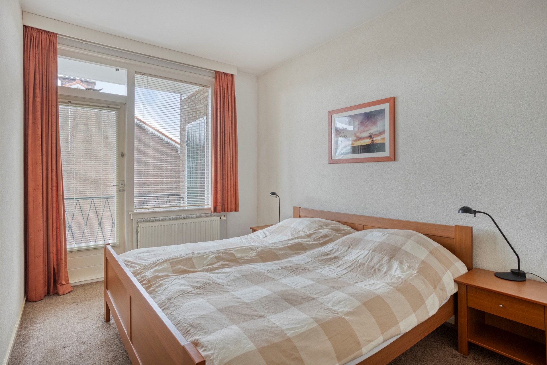 De hoofd slaapkamer van ca. 13.50 m2 bevindt zich aan de achterzijde van het appartement. De 2e slaapkamer van ca. 9,00 m2 ligt aan de voorzijde van het appartement en is momenteel in gebruik als werkkamer. Vanuit de hal is een separate ruimte bereikbaar waar de opstelplaats van de CV en de aansluitingen voor wasmachine en droger zich bevinden.