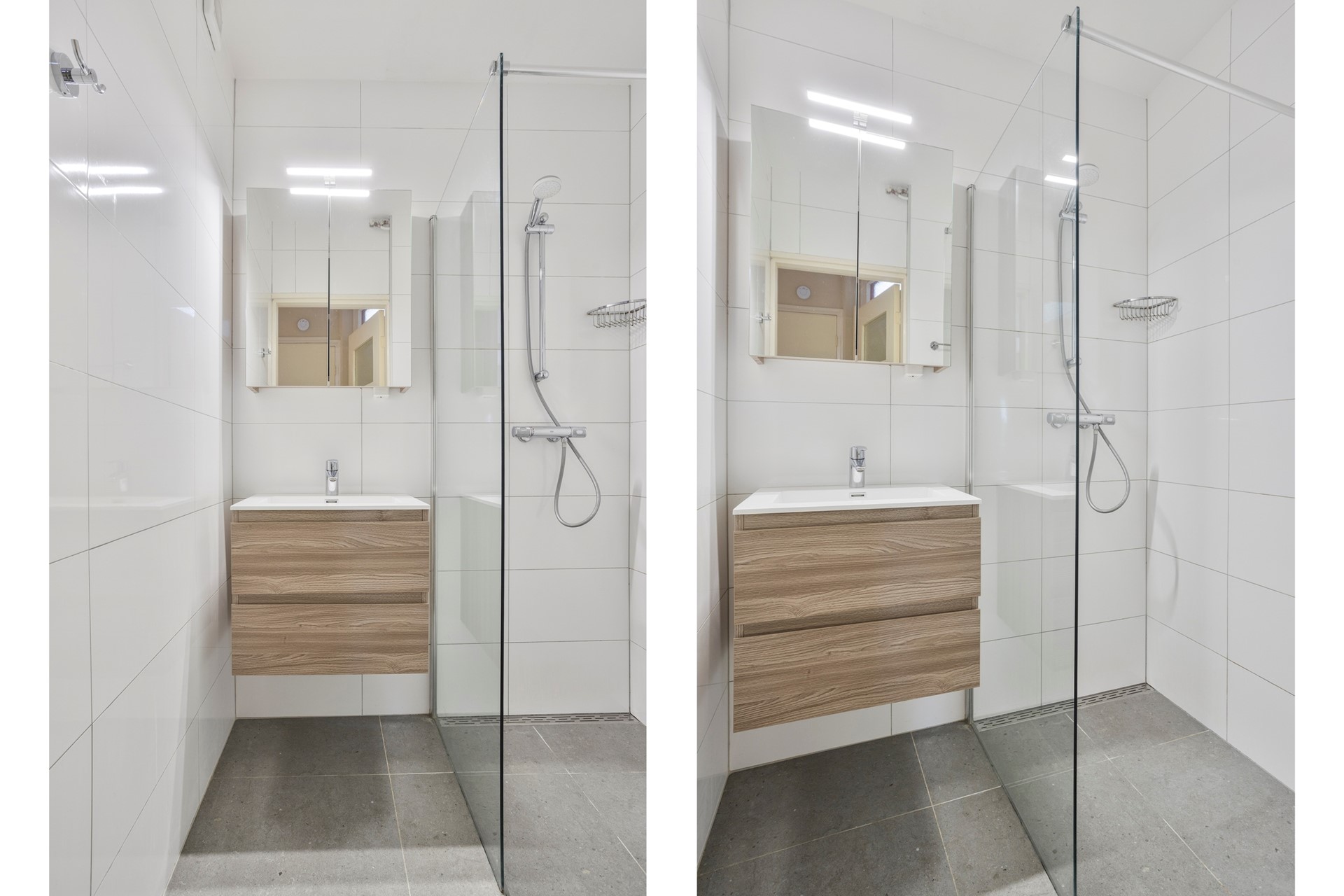 - Badkamer met inloopdouche, wastafel(meubel), design radiator