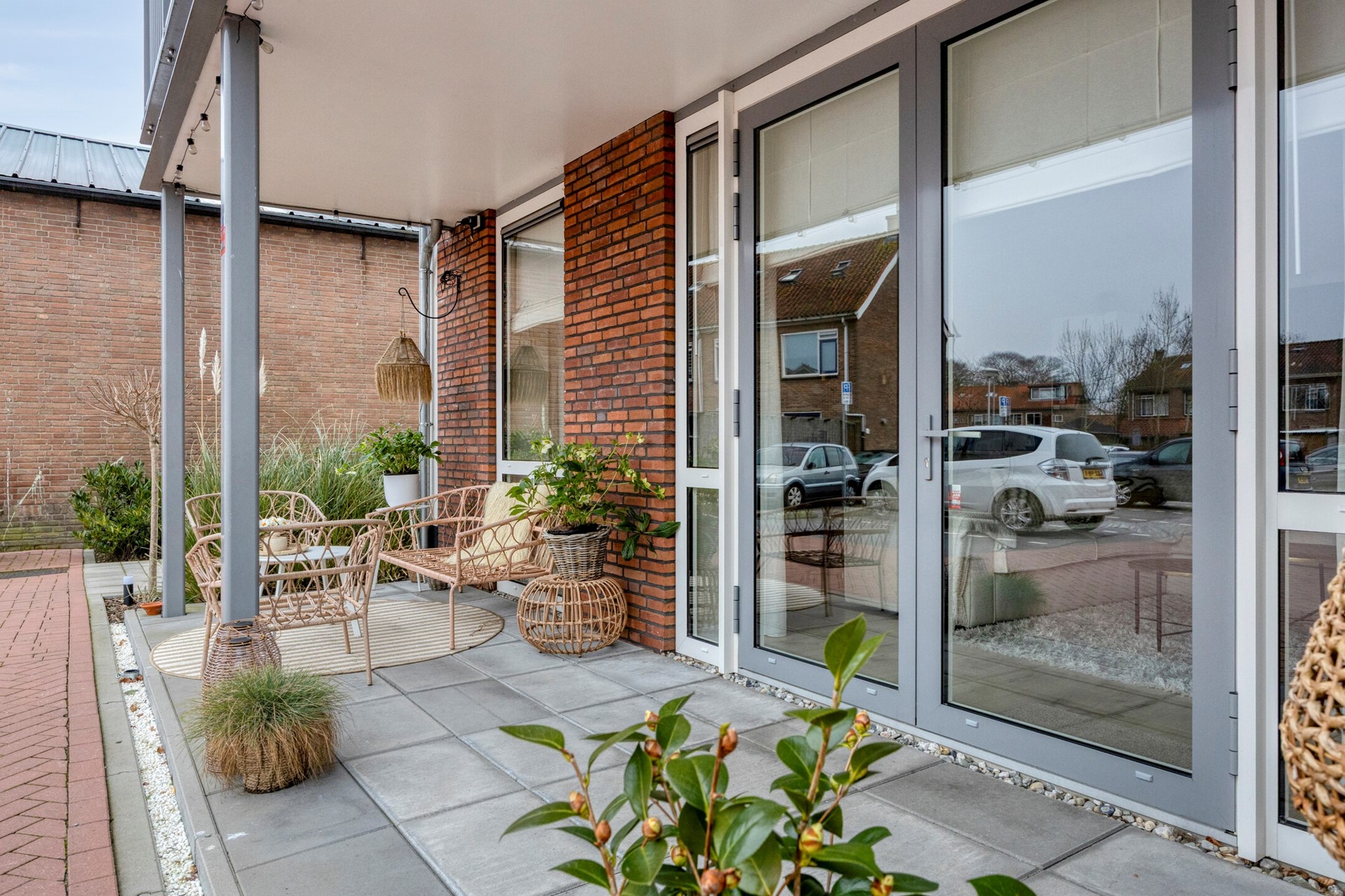 - Zonnig terras op straatniveau bereikbaar vanuit de woonkamer